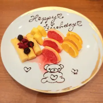 そして可愛いバースデープレートのサプライズが!名物シンパンケーキもあります。