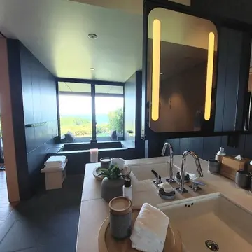 部屋風呂にも温泉が引かれていて、窓が全開するので半露天風呂感覚で入れます。