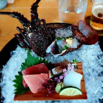 前菜: 伊勢海老油霜 焼き万願寺浸し 土佐酢ジュレ
