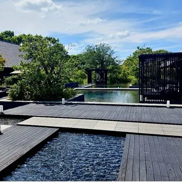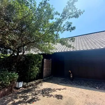 重厚な屋根瓦と炭色の杉材でできた平屋造りの建物が素晴らしい、とても落ち着くたたずまい