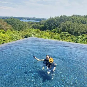 少し暑かったのでバーラウンジ内で(こちらは水着NG)お菓子を頂き、一度部屋へ戻ってから水着に着替えてインフィニティプールへ。