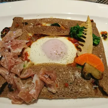 京都なので和朝食膳も気になったけど、ガレット好きな私はやっぱりそば粉のガレット!(左)