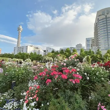 薔薇が咲き誇っている山下公園の近く