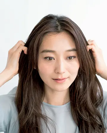 「日中のスタイリングも、傷んだ髪を改善しながらできたらベストですよね。つけている間、髪を保湿してケアしてくれるのが、今人気のナチュラル系バーム。まとまり感が出るので、ヘアワックスがわりに使えるうえ、枝毛や切れ毛も防いでくれる。ツヤを与えるオイルと混ぜると、ぐっとなじませやすくもなり、しっとり感が長持ち。パサつき髪もまとまり、落ち着いて見えますよ」