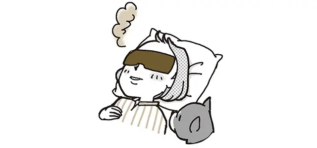 <涙の油分が少ない人はマイボーム腺の流れをよくして> 1. 上下のまぶたを温めて、油分の通りをよくする。蒸しタオルは最初熱すぎてすぐ冷めるため、市販の温熱パッドが有効。