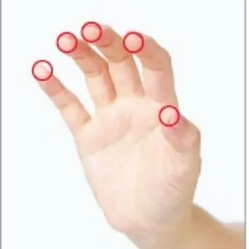 爪が長い人は第2関節を使って 爪が長くて皮膚に食い込んでしまう人は、グーの手で第2関節を使う。指の腹より力が入りやすいので、優しく押し当てて揺らす。