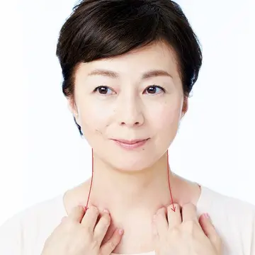 「エクラ世代のたるみは、真皮や表情筋など肌の深部が硬く凝り固まり、それがゆるんだ皮膚とかい離して起こります。コスメなどで皮膚を引き締めることも大事ですが、深部をゆるめないと血流やリンパが詰まったままで、根本解決になりません。深部が凝り固まるのは、更年期特有の心のこわばりも引き金に。イライラ、うつうつとしていると表情が凝り固まり、めぐりが悪くなるのです。このようなこわばりは、肌表面をなでるようなマッサージやぐいぐい力を込める方法ではほぐれません。顔に鳥居をイメージし、『押しながら揺らす』テクニックで肌の奥にアプローチ。こわばりがほぐれたとき、顔は自然と上向きに引き締まり、幸運を呼び込むような優しい表情になれるはずです」(サリーさん)