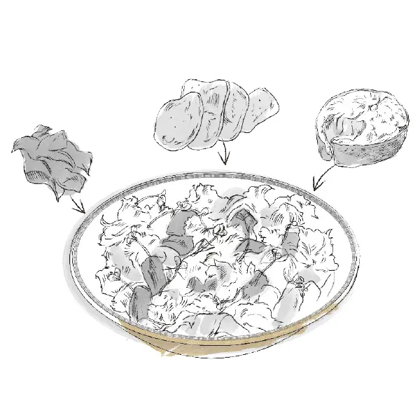 キャベツのせん切り、にんじんのスライス、かぶのくし形切りなどの生野菜は、ビニール袋に入れて天然塩、酢、ゆかりなどであえるといい。空気を抜いて冷蔵庫で保管すれば、食べるとき盛りつけるだけでOK。