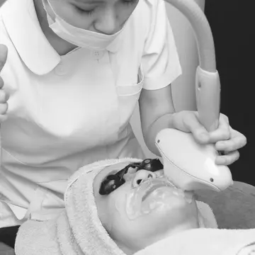 まずは看護師さんが「ライムライト」で顔全体を照射。