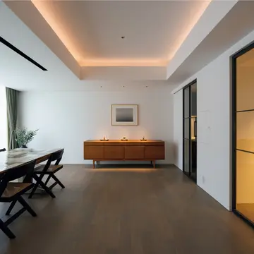 購入したマンションをリノベーション。キッチン、バスルームはそのまま微調整。壁、天井、扉などはすべて取り払い、一度スケルトン状態にしている。