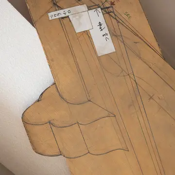 まず全体の設計図である『道具帳』を作るデザイン室があります。それをもとに大道具の土台や仕掛けを作る『大工』、紙や布をはる『経師(きょうじ)』、屋根など建物を塗り込んでいく『塗方(ぬりかた)』、そして海や山、木々などの絵画的な風景を描く『絵描き』。塗方と絵描きの仕事が分かれているのは、歌舞伎座だけですね」。