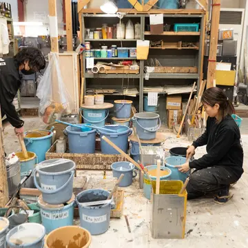 師走の忙しいスケジュールの合間を縫って、都心から約1時間半。江戸川の近くにある大道具の工場へ