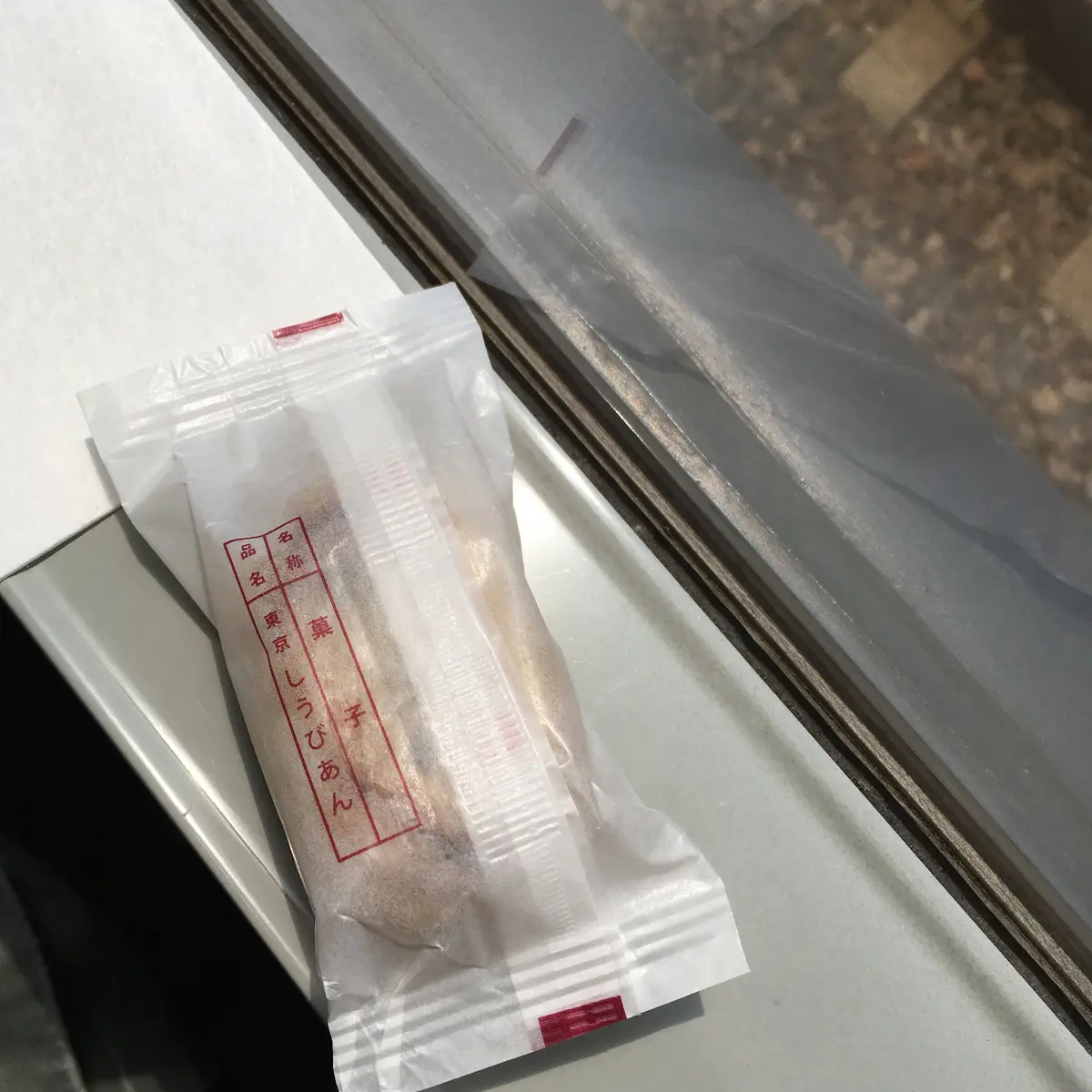 さらに、外装に負けず劣らず個包装にも独特のムードあり。裏には、「名称/菓子」「品名/東京しうびあん」と記載されています。そんなことは書かなくてもわかりきっている!と思うのは野暮。意味内容を超えた何かまで醸し出している、詩に類するものと受けめたいところですね。