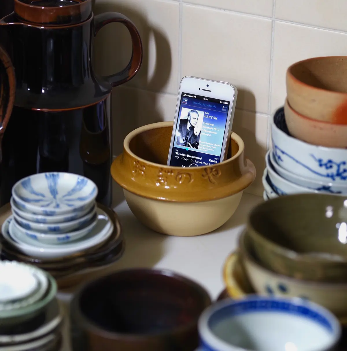 鍋として使わないときは、お勝手のスピーカーとして活躍します。i Phoneを中に入れて音楽再生するだけで、音質が格段に向上✨ ついでながら、漬物の入っているプラケースも旅の耳栓入れ、薬入れなどに便利です。海外で取り出すと、なおさらほっこりするグッドデザイン。