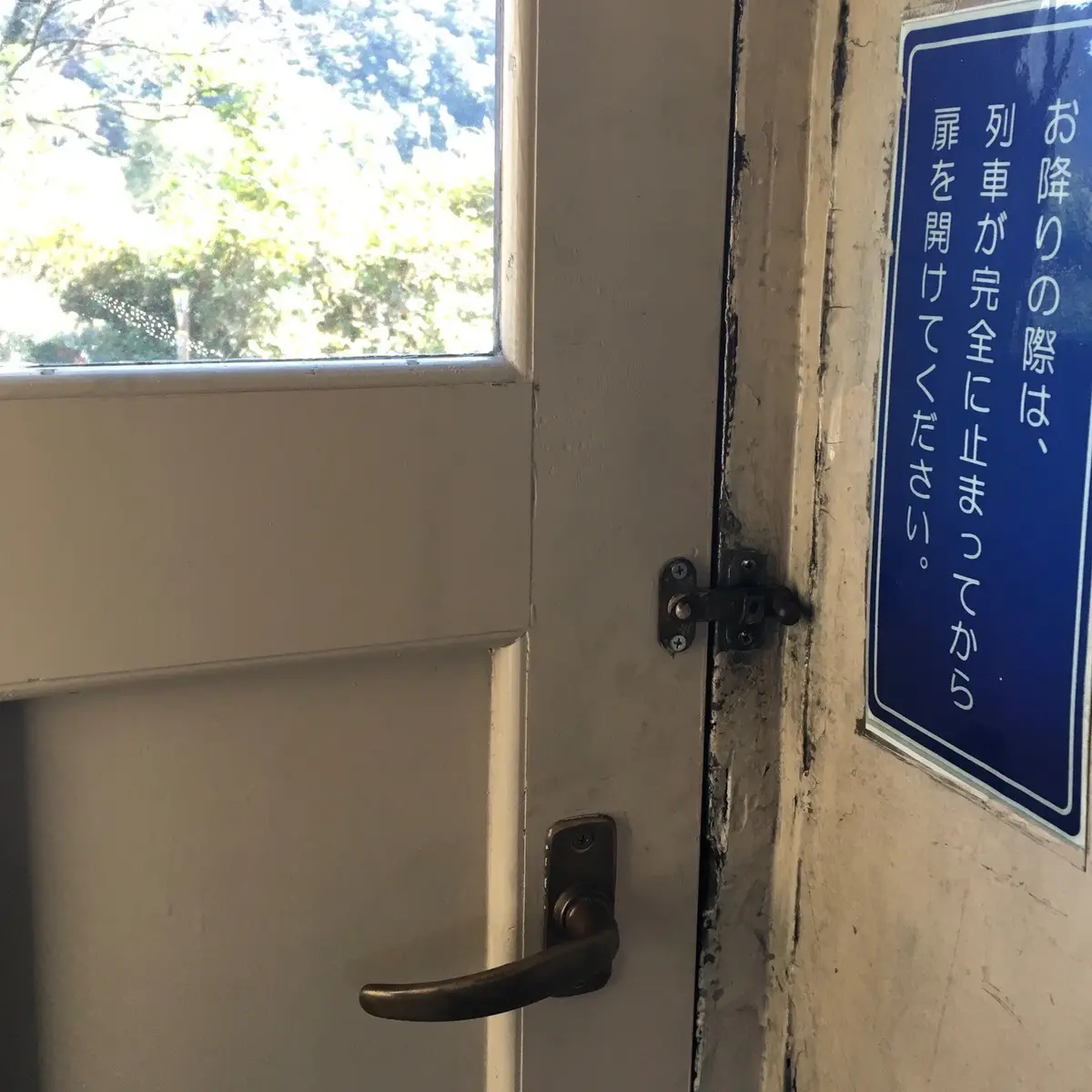 改札時に検温と手のアルコール消毒を済ませて、いざ客車へ。昭和15年製のオハ35は、ドアも窓枠も座席も床材も見事に木。荷物を載せると少し沈みこむ、文字通りの網の棚もいいですね。列車が動き出したら窓全開で景色を楽しみ、降車時にはドアは自分で開けましょう。ドアのカギは、小学校のうさぎ小屋についてたような、簡素な打掛け錠。何だかその華奢さが乗客への信頼の証のようにも受け取れて、しみじみ見惚れてしまいました。