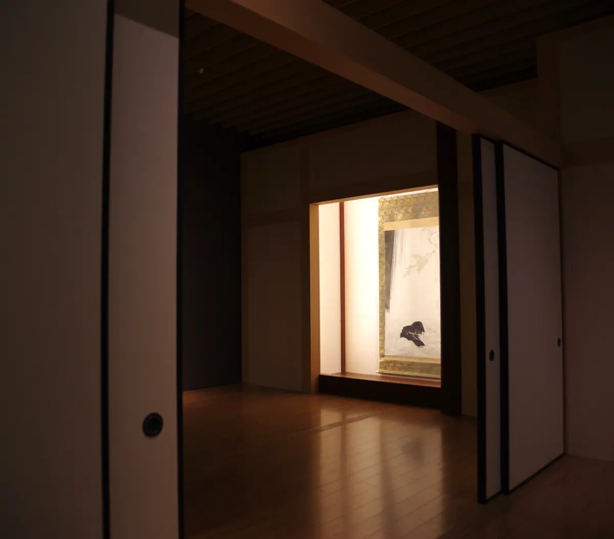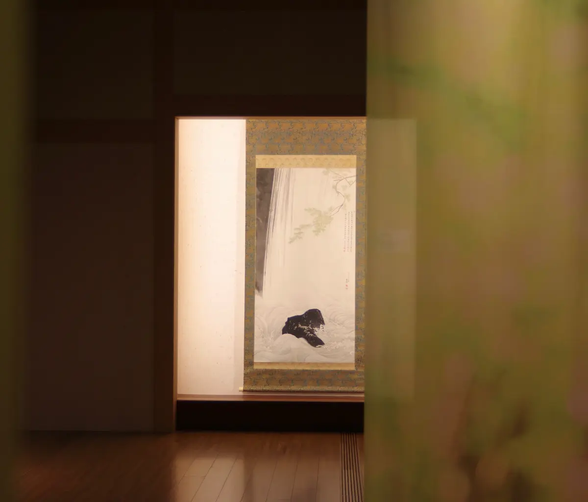 "巧者"ついでに申しますと、展覧会の第一章「空間をつくる」では、展示の造作が巧みでした。冒頭の円山応挙の『青楓瀑布図』は、あたかも書院の床に飾られているよう。襖ふうの壁を隔てた隣の空間から振り返ると、絵が周囲に溶け込んで滝のリアルさがさらに増し、「これぞ、サントリーの天然水!」と感じられました。ネタバレになるので掲載しませんが、締めくくりの作品のセレクトも、ウィットが効いていておもしろいですよ。