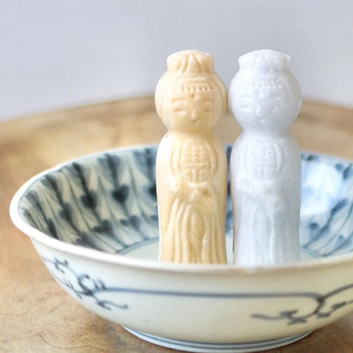 高崎観音の1/500スケールくらいと小ぶりなサイズゆえ、白・茶の二尊とも余裕でお腹に収まります。白いほうがごまあん、ふつうの皮が小豆あんです。素朴な作りでところどころあんこがはみ出ていますが、それもご慈悲の顕現かと。高崎を訪れた際のお土産にどうぞ。