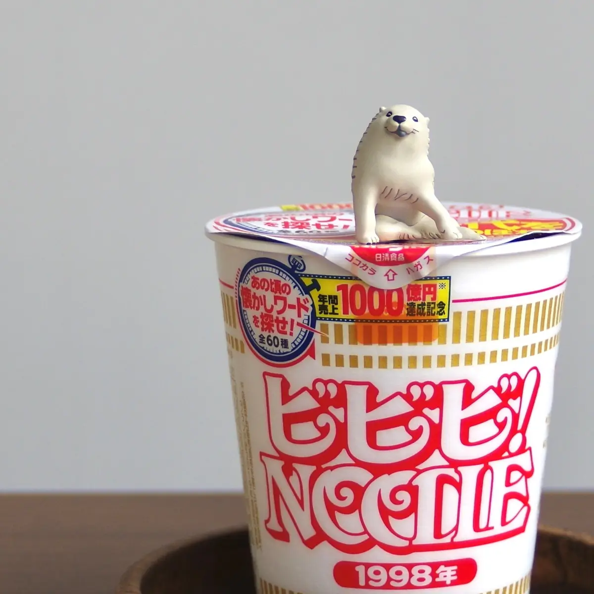正月らしかったのはこの6cm四方くらいで、その奥はガチャガチャのフィギュアがごちゃごちゃと。たまったこれらの使い道としては、ほどよい重し…くらいですね。年始から賞味期限に追われて食べるカップ麺の蓋守りに、芦雪の子犬など座らせて。今更ながら、カップヌードルのパッケージが完全にめでたい三色構成だということに気づきました。
