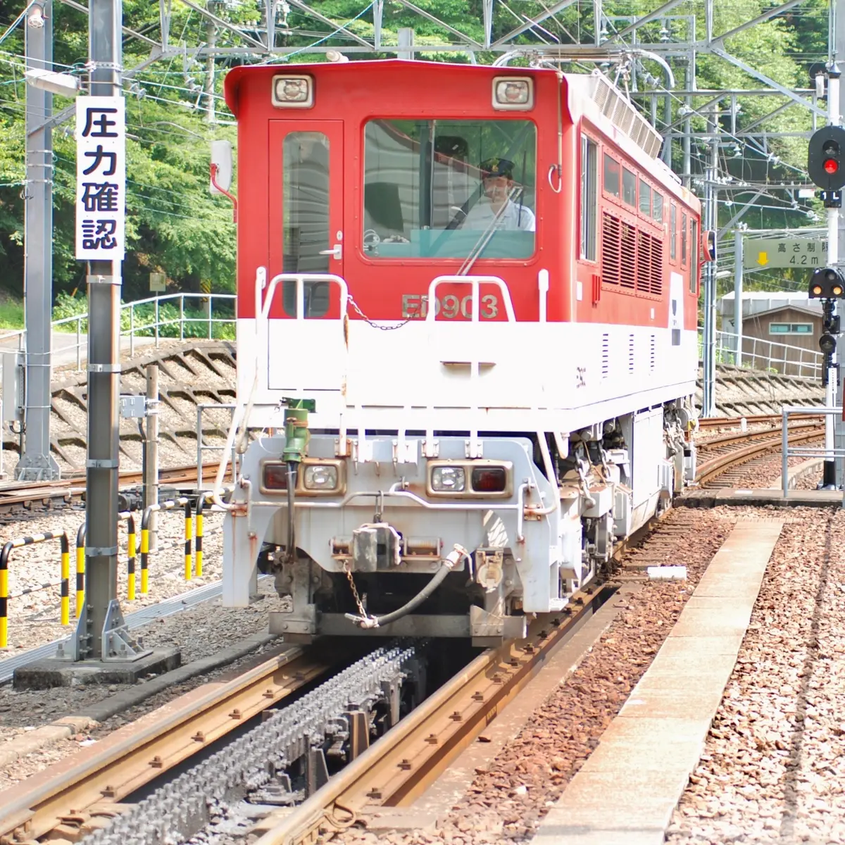 信越本線の横川〜軽井沢間では、明治26年から昭和38年まで、歯形を刻んだラックレールと電気機関車の歯車を噛ませながら急勾配を進むアプト式を採用していました。