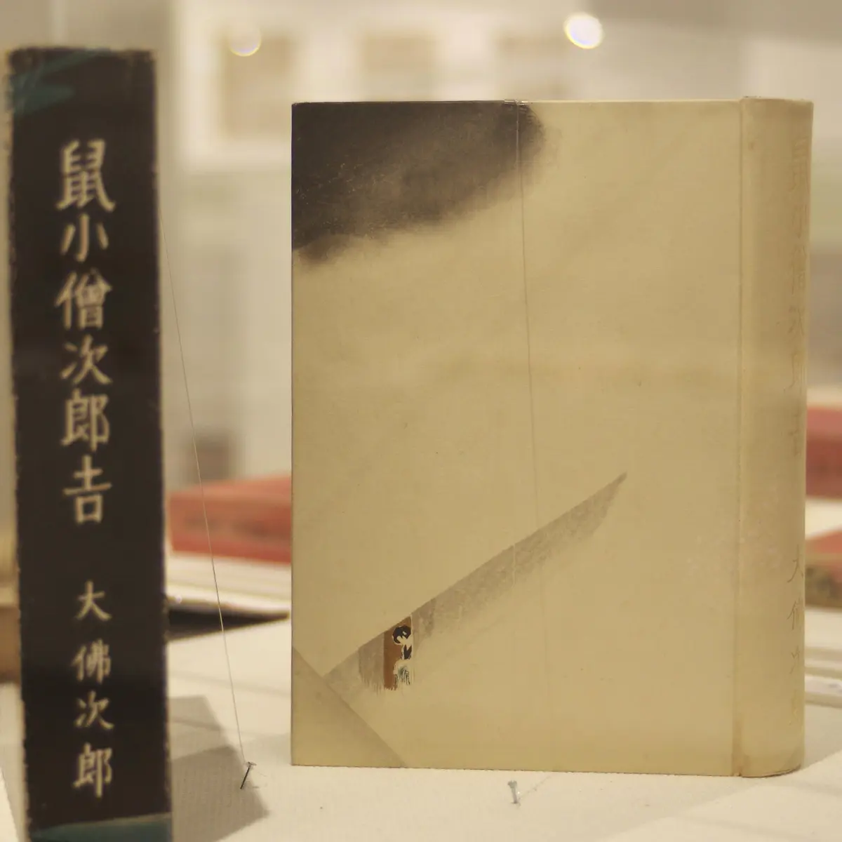 3枚目、大佛次郎『鼠小僧次郎吉』。読み人泣かせの白い装幀。表・背・裏にわたる一枚絵の構図では、吉井勇『麻の葉集』と双璧かと。
