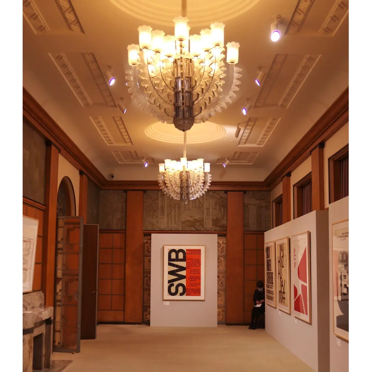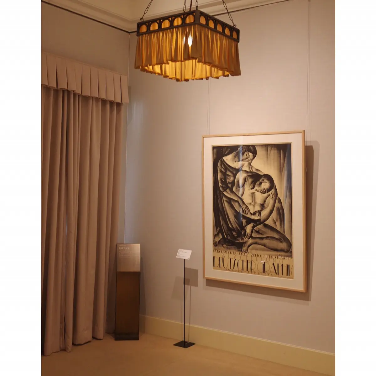 展示を見て行くと、本館2階の照明と展示作品が連関していたような気がしないでもありません。円や弧、三角形、ドレープ感……。ちょっとマジカルな星のお部屋には、エル・リシツキーの、目に見えて男女が連帯している『ソヴィエト連邦展/チューリッヒ工芸美術館』があったりします。