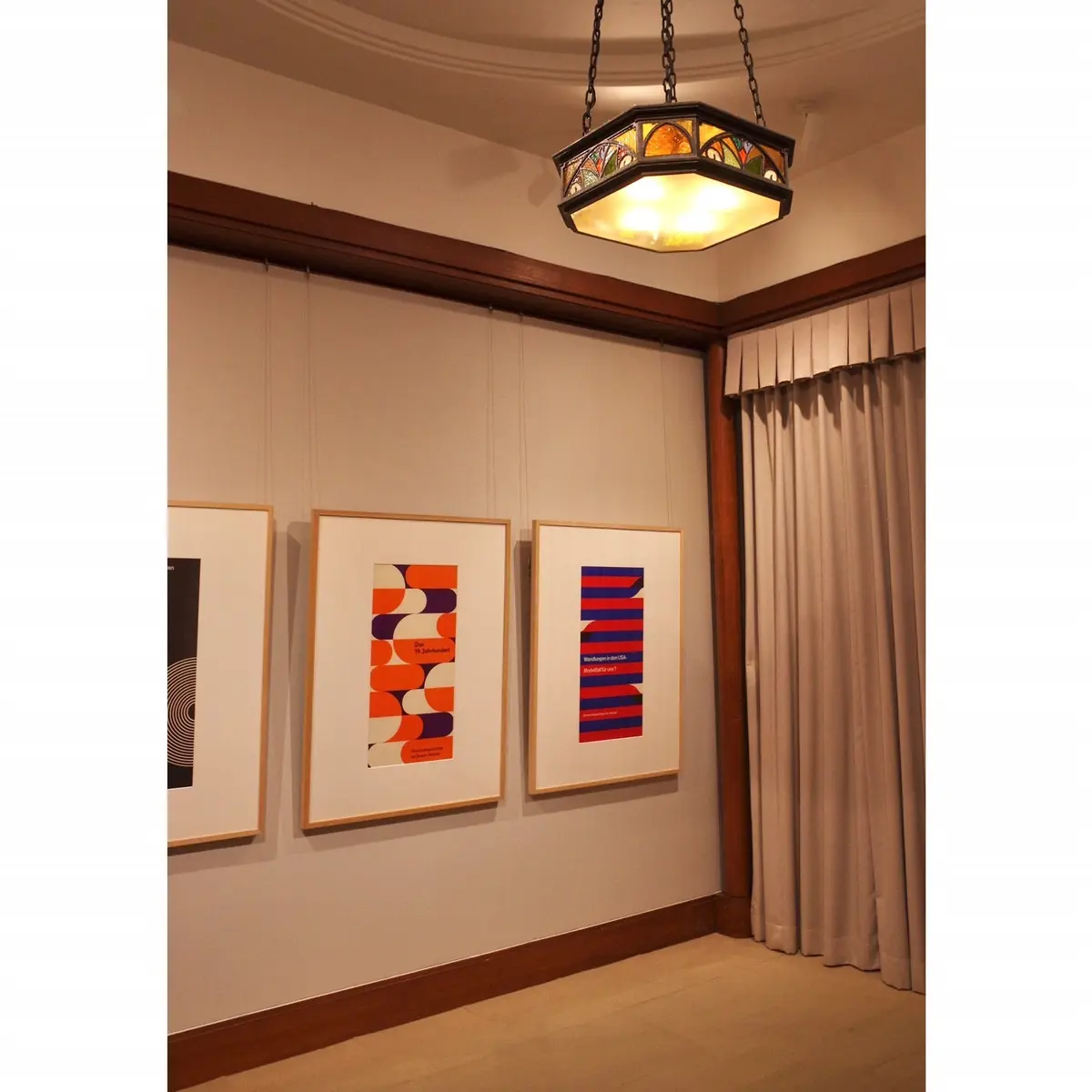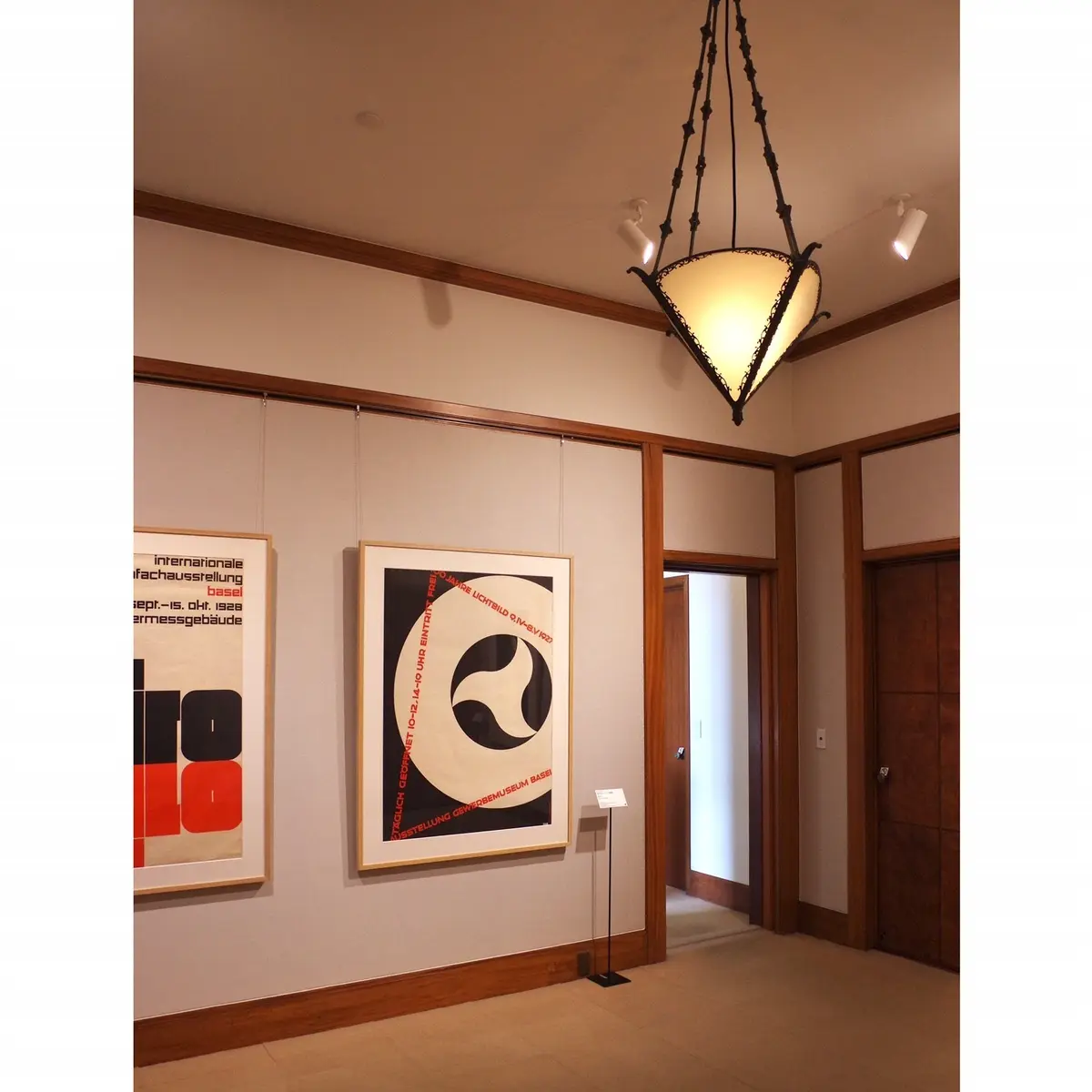 今回の展示作品のメインとなるのは、1950~60年代のインターナショナル・スタイルのポスター。色面やタイポグラフィによる、シンプルに徹したデザインがとても粋です。その源流はロシア・アヴァンギャルド、バウハウスなど、戦前のモダンな構成主義にあるため、アール・デコの幾何学牲ともマッチしていますね。