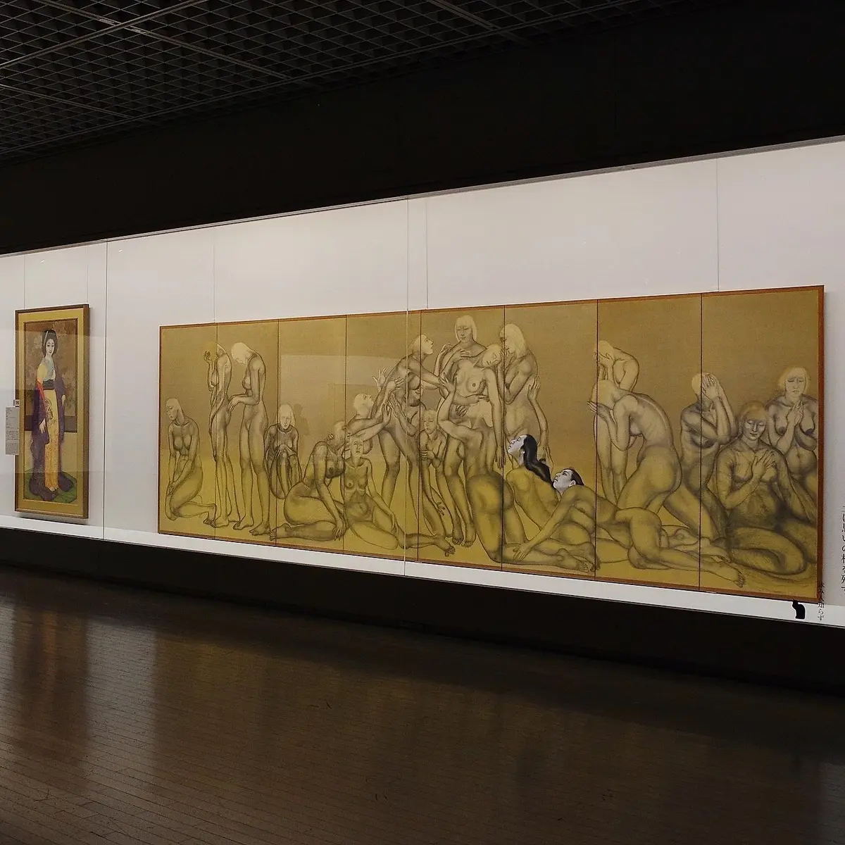 以下、『エクラ』本誌で触れられなかった作品をいくつかご紹介します。本展で間違いなく知名度が上がるのは、甲斐庄楠音(かいのしょうただおと)。「Hoo! Hoo!」と掛け声を入れたくなる舞いっぷりの『舞ふ』『幻覚(踊る女)』(写真2枚目、ともに前期展示)が対のように並んでいました。屛風絵『畜生塚』(写真3枚目)は知る人ぞ知る未完の大作。