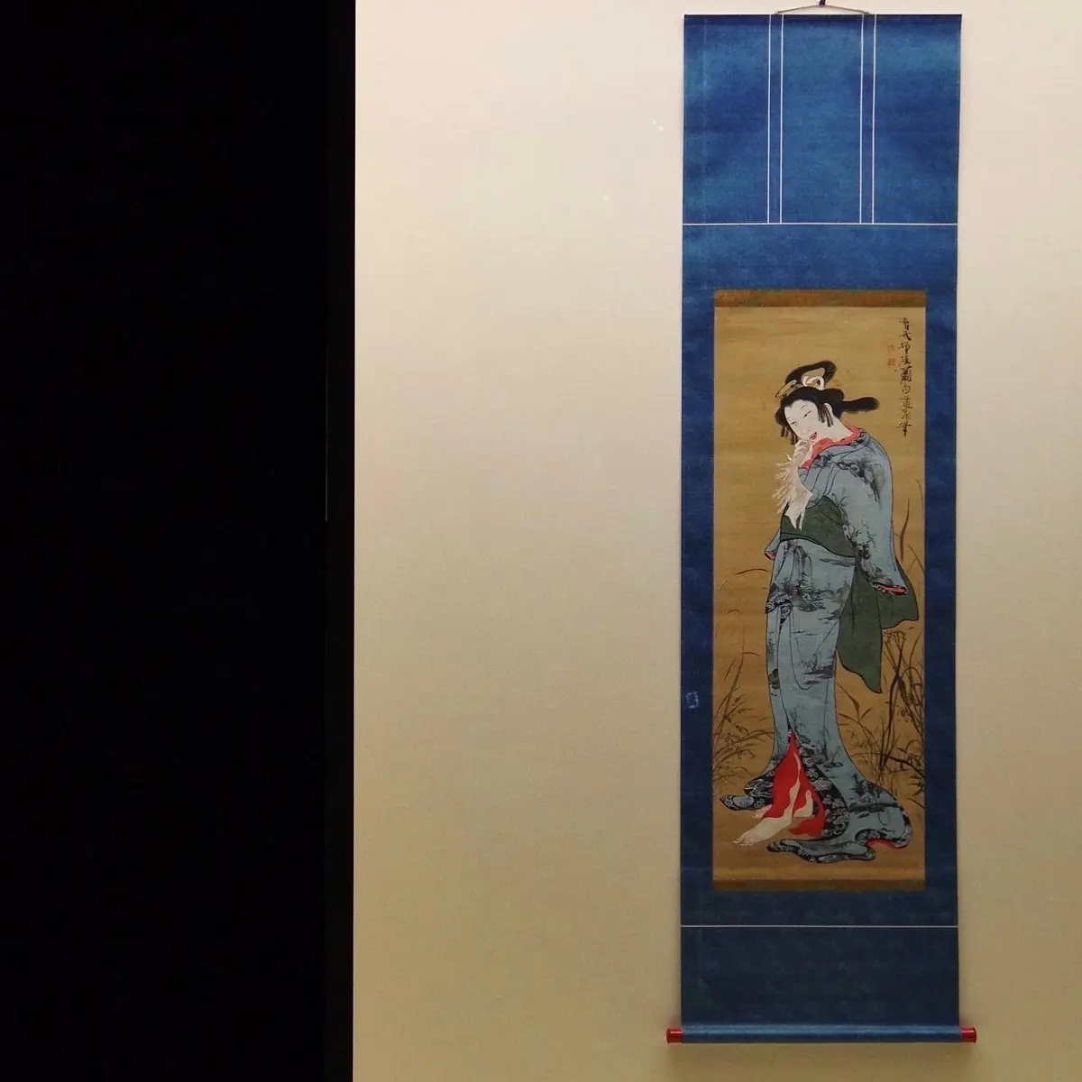 『道行』で注目したいのは女性の足の指の長さ。恒富の作品にそうそうある描写ではありません。むしろ蕭白の『美人図』と根っこが同じで、甲が低く量感は薄いけれど、何やらじっとりとした接地感。また、着物の絞りや印籠の螺鈿、胡粉盛り上げの数珠など、細部の描写も徹底しており、只ならぬ画家の執念が伝わってきます。