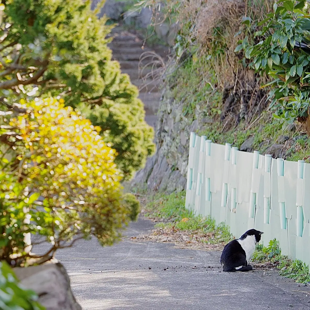 2枚目は、ばったり遭遇した壁を向くノラ氏の姿。最初こそこちらに気づいて目が合いましたが、またすぐ元の姿勢へ。5分ほど待ったものの特に動きがなく、こちらが先に諦めてしまいました。
