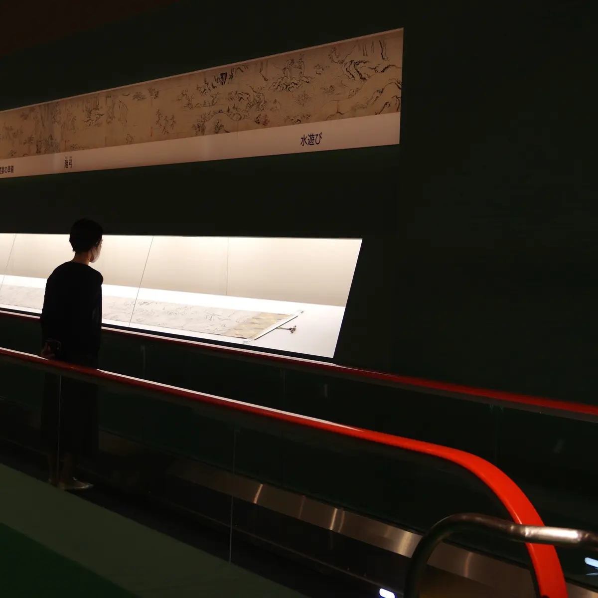 速度は8~9cm/秒くらいでしょうか。乗ってみた感想としては、絵巻に至る前は遅く、見始めてからはちと速い(※人間だもの)。とはいえ、「歩きながらご鑑賞くださ~い!」の声が飛ばず、鑑賞者同士で押し合うこともなく、ひたすら見ることに集中できるという点ではすばらしき前進です。