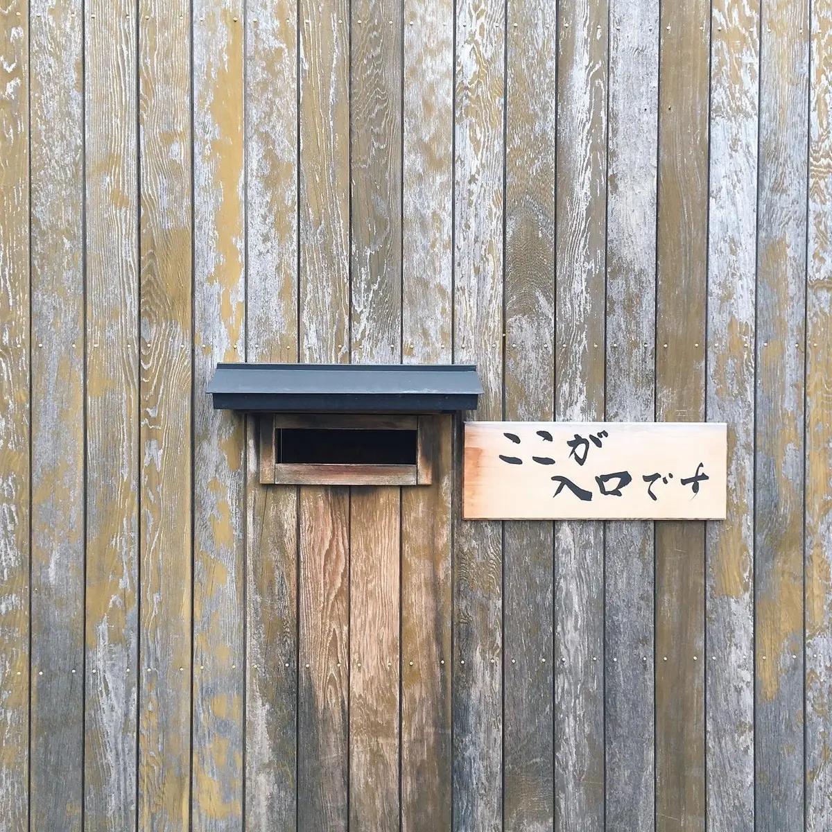 2枚目、「ここが入口です」。ずいぶん狭いので、聖書の「命に至る門」を思い出しました。郵便屋さんなら、そんな迷いは生じません。ただ、「郵便受け」「投函口」などと名詞で書くのを避けた理由が知りたい。