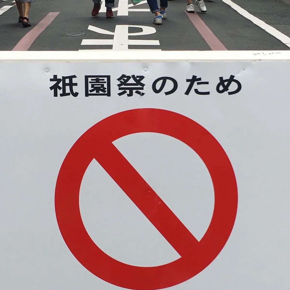 最後は、きっと今ごろ出されているであろう通行止めの看板です。1100年以上の歴史が込められた6文字の問答無用感がすごい。今年は技術継承のため、半数ほど鉾建てが行われたようですが、あくまで見物謝絶。来年こそは山鉾巡行も叶いますよう、新型コロナウイルスの調伏を願ってやみません。