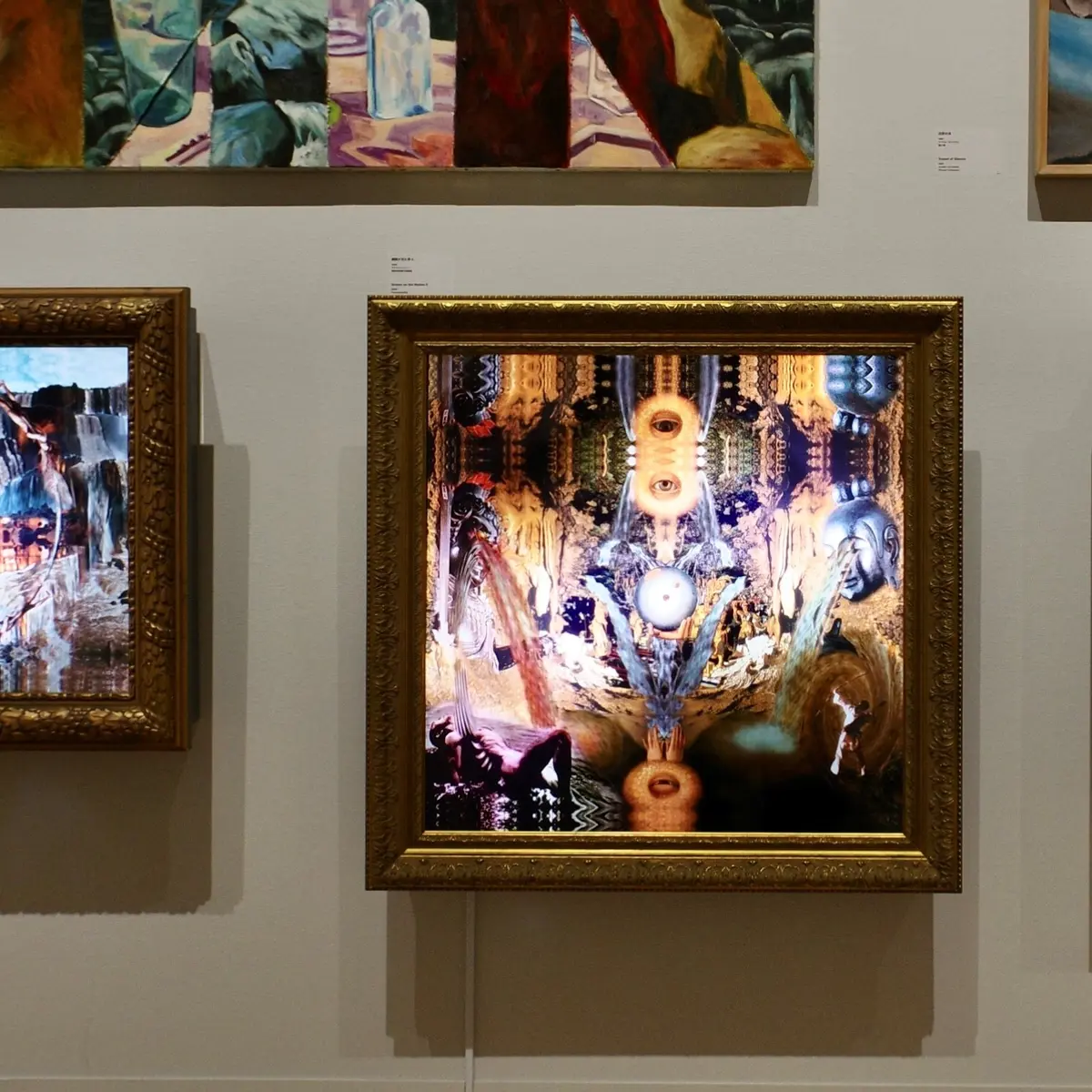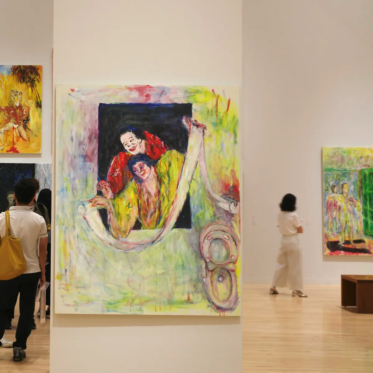 最初にご紹介するのは新木場の大規模な展覧会。『GENKYO 横尾忠則 [原郷から幻境へ、そして現況は?]』(東京都現代美術館、~10/17)は、60年に及ぶ創作の軌跡を600点を超える作品で総ざらいできる圧巻の内容。「ひとりの人間の中からこんなに出てくるものなのか」と驚くために行くだけでも、とりあえず正解。展示室はもはや不思議の曼陀羅状態です。画家宣言以降の大画面作品、多次元絵画、テクナメーション、'60年代のグラフィックデザイン、滝、少年文学や冒険譚、Y字路、銭湯&温泉と、テクニックもテーマもさまざまな作品を振り返るうち、「横尾さんの超越的にマイペースな活動は、みうらじゅんさんのマイブームの"原郷"でもあるんだなあ」と、何だか秘仏本尊を拝するような気がしました。