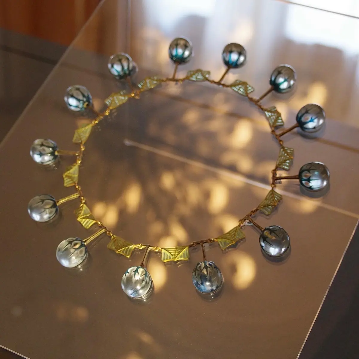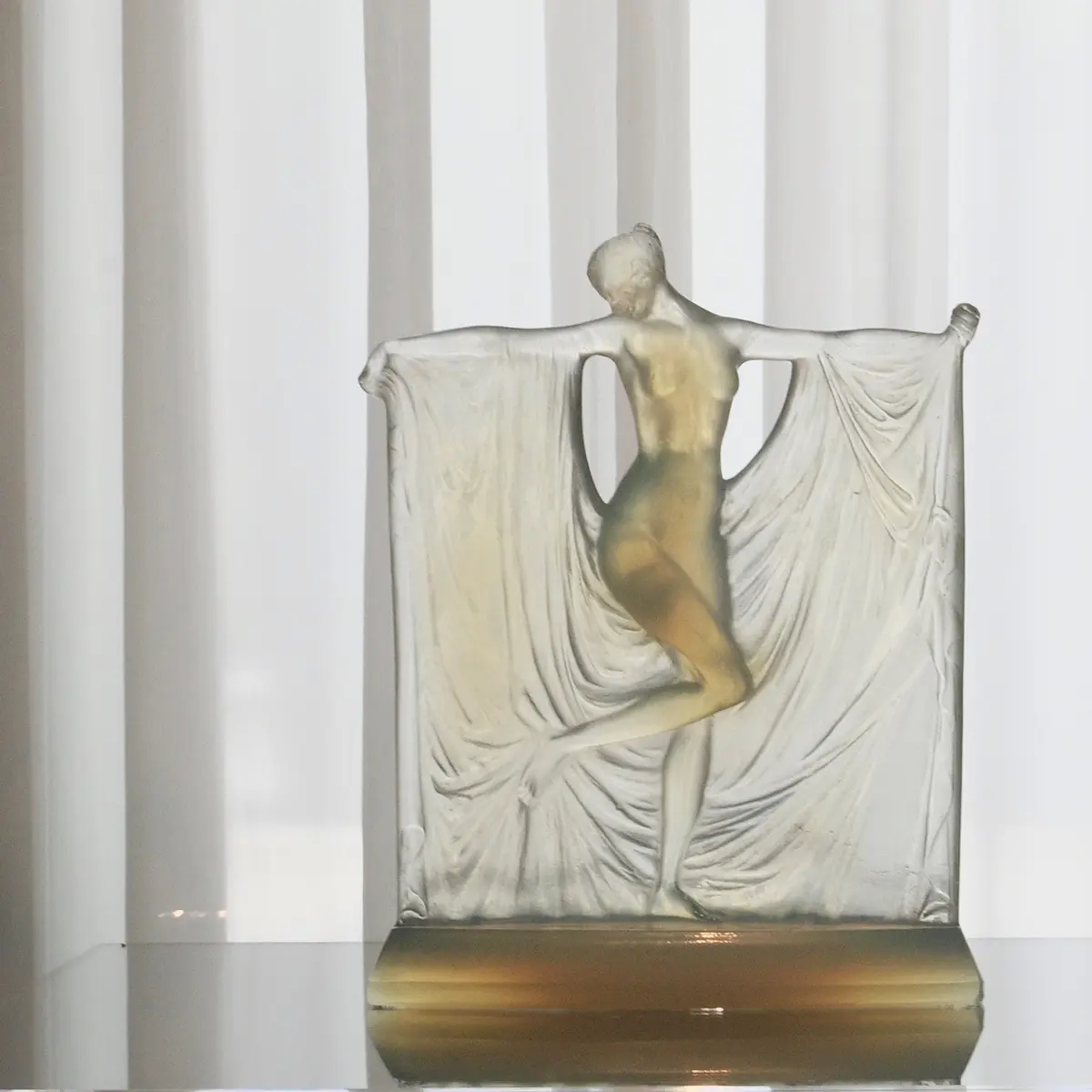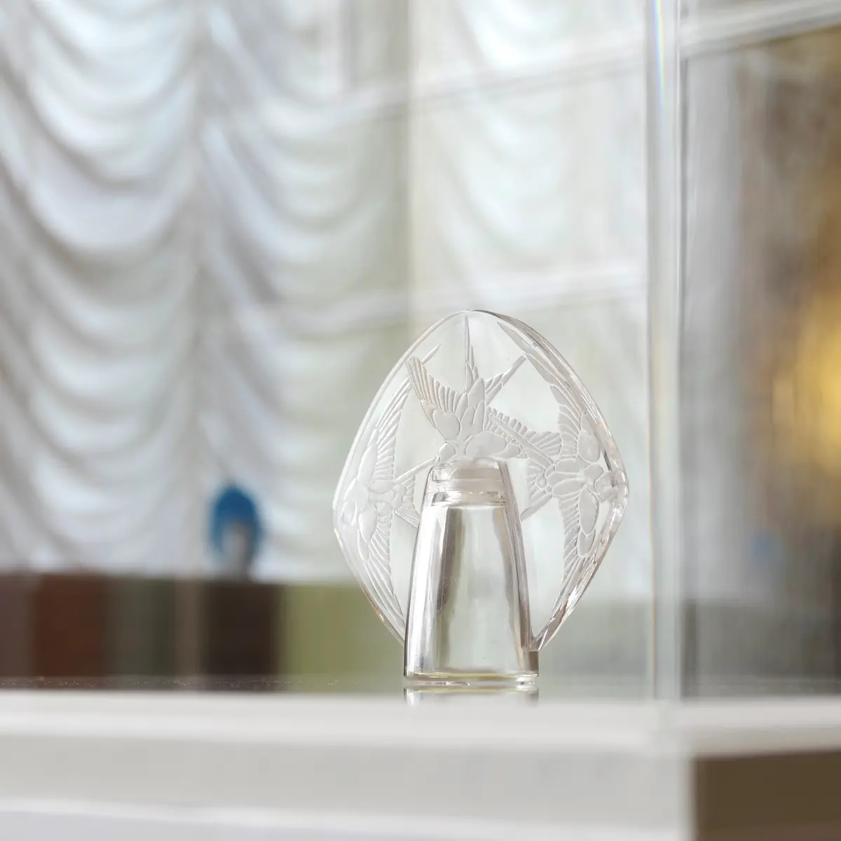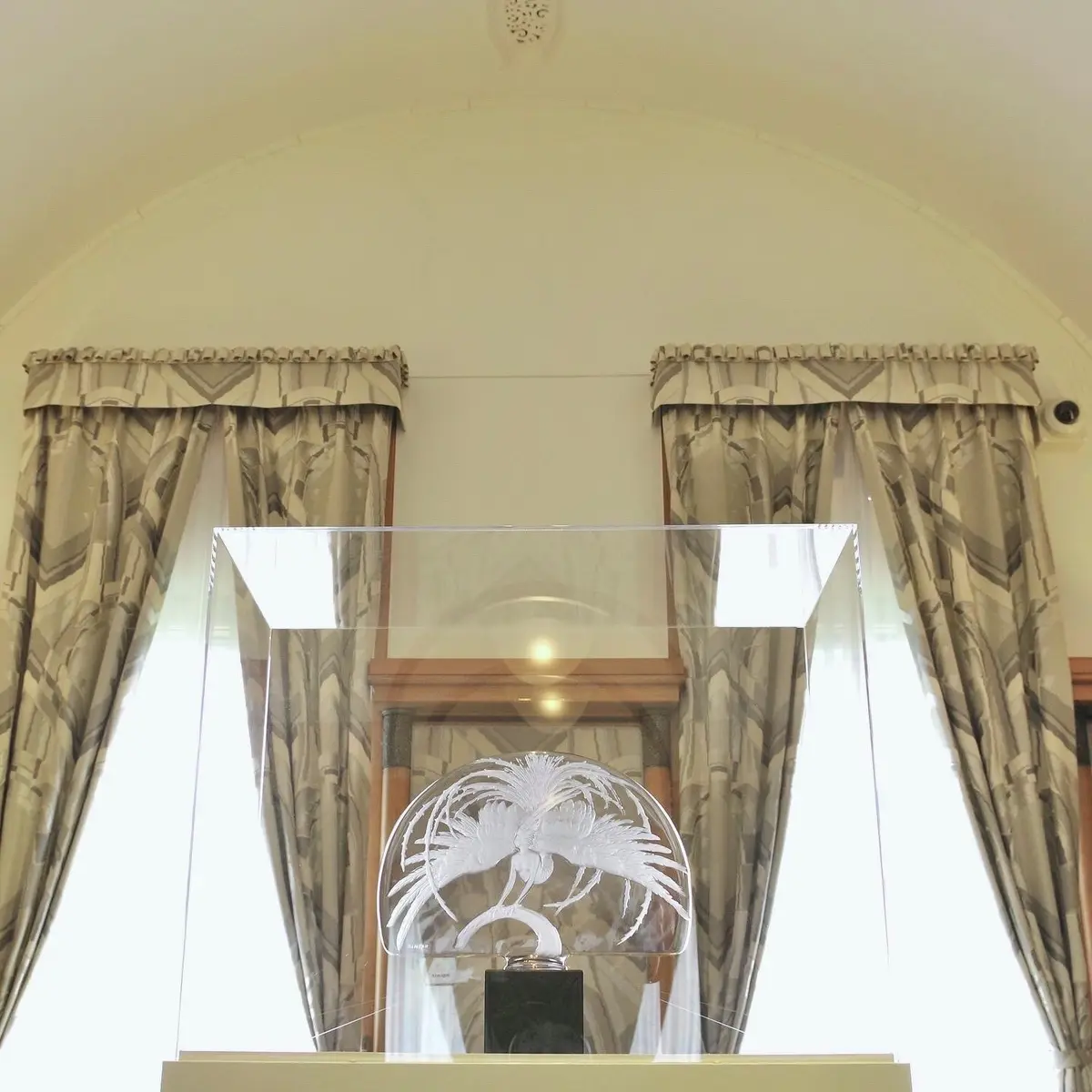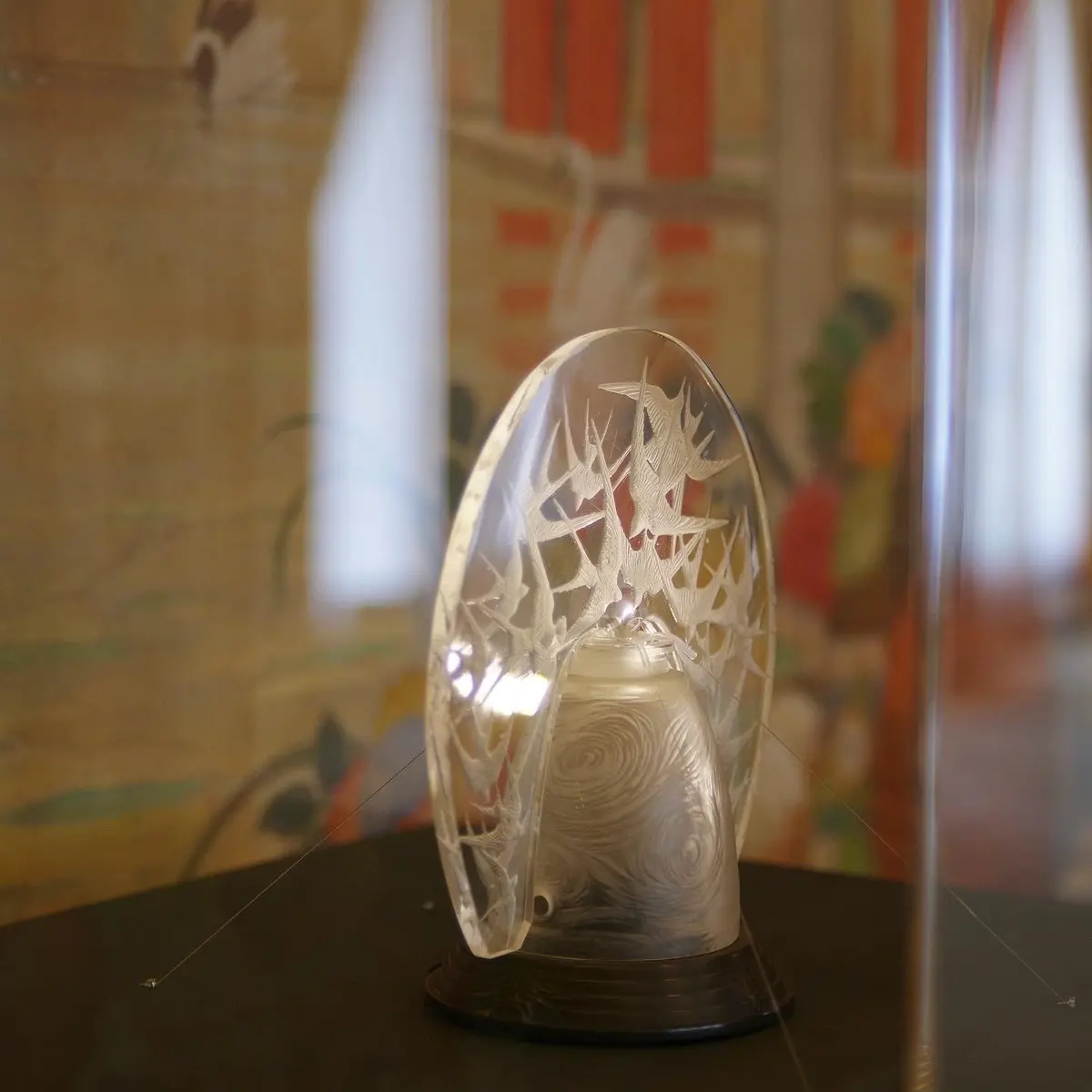 作品は概ねケース内展示で、必ずしも撮りやすいわけではありません。しかし本館に限れば、”日本一映り込みが美しい美術館”といっても過言ではないでしょう。これまたラリック製のシャンデリア、アンリ・ラパンの壁画、調度品、カーテンのドレープ……。この美術館ならではの雰囲気を少しでも感じてくださいませ。