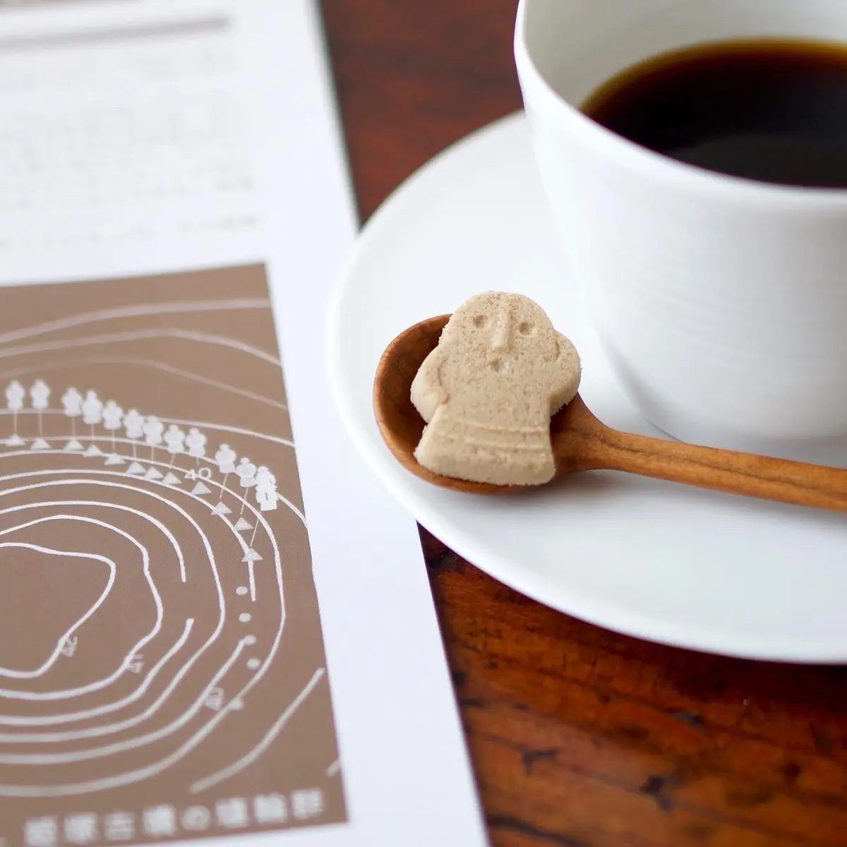 お砂糖が溶けゆく様子を眺めながらふと危惧するのは、近ごろ「踊る埴輪」ばかりが"埴輪代表"として扱われがちなこと。まさしくゆるキャラ的な造形ゆえ人気が出るのも当然ですが、丸目でニョロニョロみたいな人の姿はかなり特殊。各地でホイホイ出土しているわけではありません。他の人物埴輪はもちろん、鶏や水鳥といった古代祭祀との関連で重要な埴輪にも注目していただきたいところ。