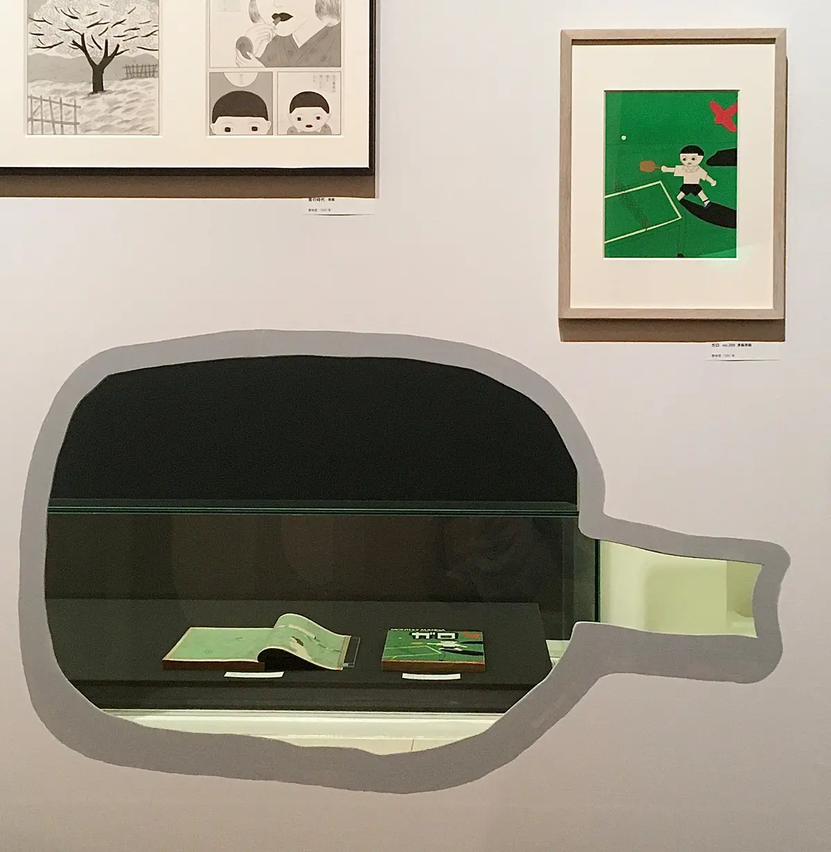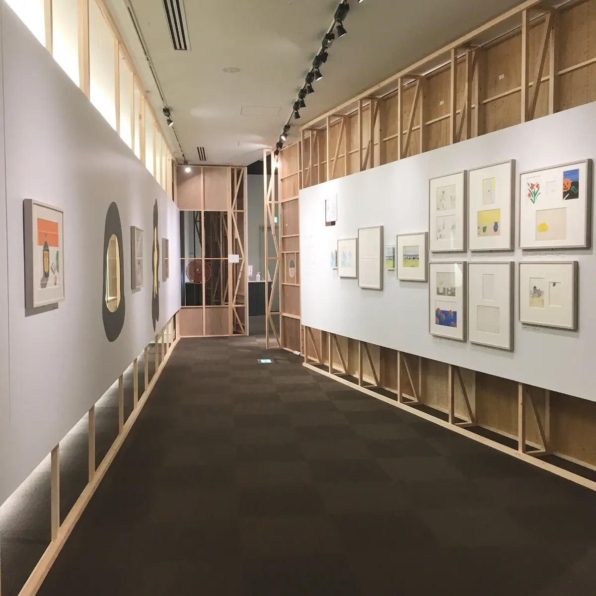 こちらは、’16年以来の全国巡回展の集大成。仙台展に行ったのは5年も前という事実に大きな衝撃を受けましたが、その時とは全く異なる会場設営でかなり気合が入っていました! 1階から絵本関連の展示があったり(※8/31まで)、階段の手すりに機関車がいたりと、入館してすぐワクワクモードへ。2階の展示室は舞台の大道具風の仕切りで区分けされていて、ところどころにのぞき穴が設けられています。