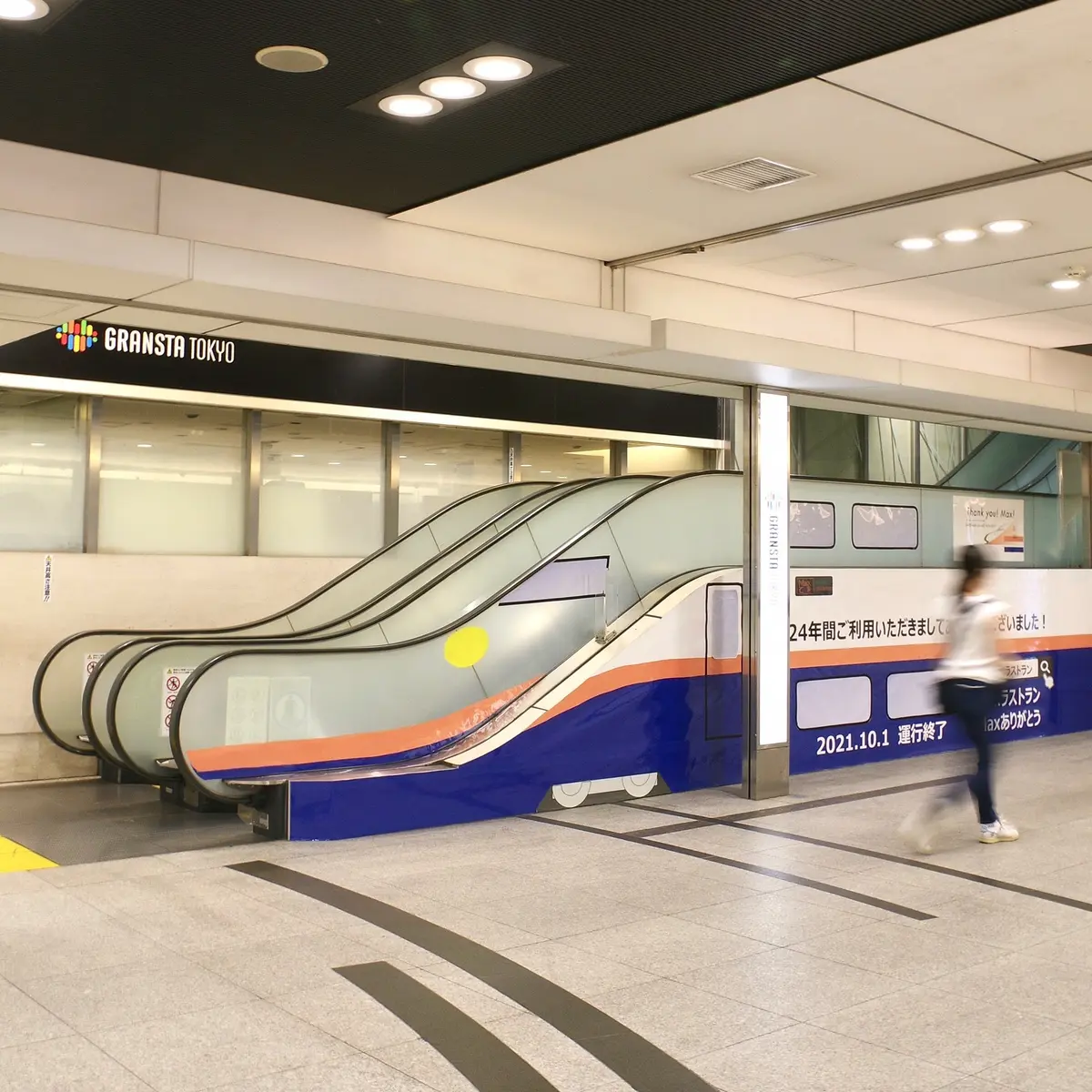 グランスタ東京を貫く東京駅の地下東西通路を歩いていた時のこと。引退迫るE4系新幹線の姿をした秀逸なエスカレーターを発見、その完成度の高さにかつてない衝撃を受けました。