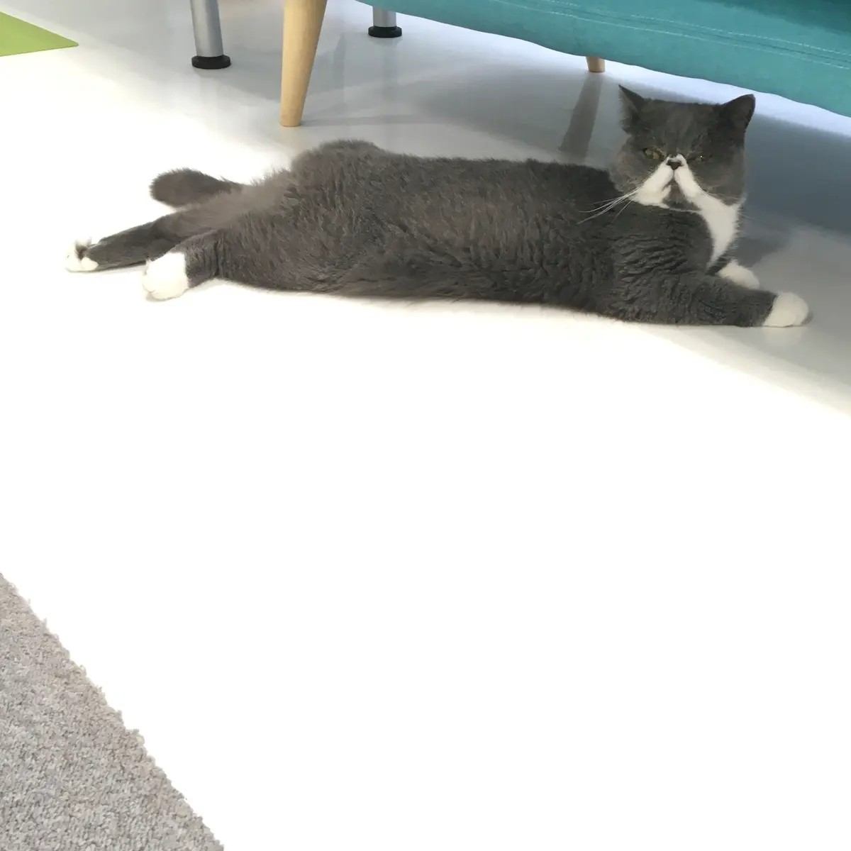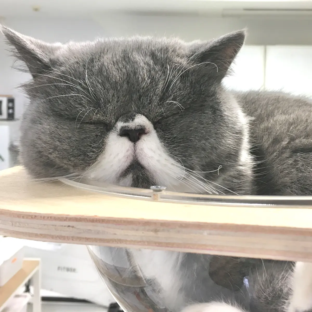 頭が横に長い俵型、そして何というおすもうさん顔なのでしょう。脚もむっちり太めで4本とも白靴下、まるでグレーのドラえもん♡ 「しまった録音機を忘れてきた」なんて事態にも、無言で直立姿勢になって、テーブルにそっと差し出してくれそうな落ち着きと貫禄がありました。