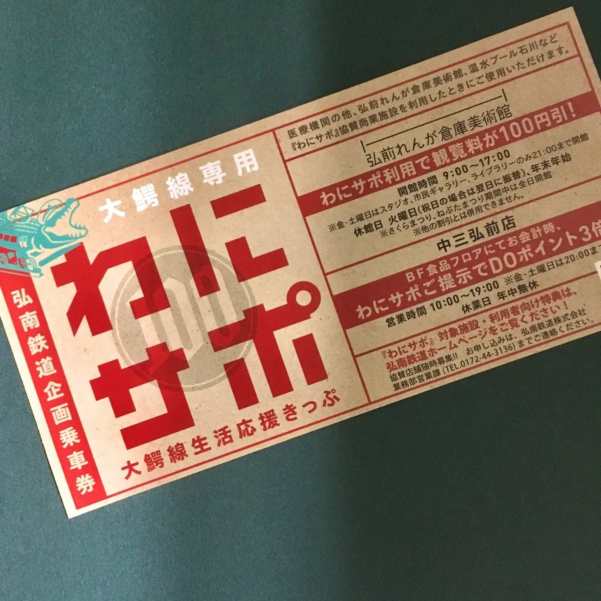 弘南鉄道ご利用の際は、美術館や鰐comeなどの協賛施設でサービスを受けられて復路運賃まで100円になる「わにサポ」の利用がおすすめです。いささか利益が心配になりますが。。