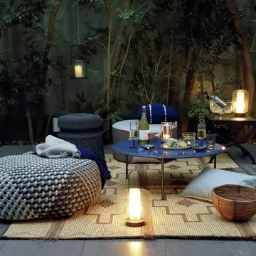 ムーディーなテラスを演出。ランプとスピーカーが一体に