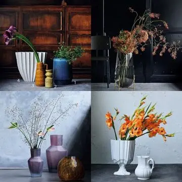 花は豪華でカラフルなものより、野花が好み。花瓶もスウェーデンで。アクネ ストゥディオズの仕事で頻繁にストックホルムに行っていたからか、北欧のミニマルなコンテンポラリー・デザインにも目がない。
