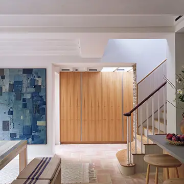 ロンドンで訪ねたのは、ファッションブランドのショールームとコンセプトストアを手がけるマリア・レモス宅。ロンドン北部、カムデンタウンにある庭つきの一軒家。夫と愛犬、そして3人の子供たちとのスイートホーム。3階までの各フロアは、それぞれのテーマを設けている。今回は、リビングと寝室を拝見。