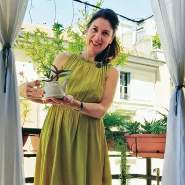 バルコニーで季節の花を楽しむ彼女にとってかけがえのないものは、エネルギーに満ちた植物たち。