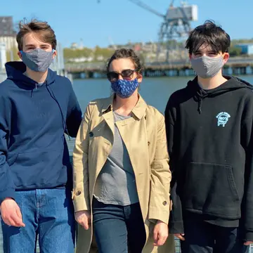 ❶息子ふたりとマスク姿で近所の運河沿いを散歩中