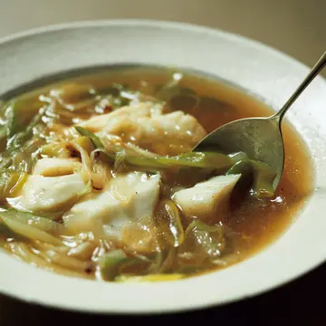 毎日のスープが、ウー・ウェンさんが元気な秘訣。炒めた長ねぎの香ばしさが隠し味の「大根と油揚げのスープ」、白菜の甘味を存分に引き出した「白菜と豚バラ肉のスープ」のレシピを教えてもらった。