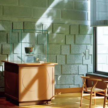 貴重な灯籠や苔むした庭を眺めながら、古九谷や茶道具を見られる2階エリア