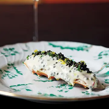 「オマール海老 ジャガイモとグリーンピースのニョッキ」ディナー¥25,000のコースから