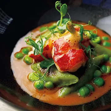 日本各地のとびきりの食材を用い、華やかかつイタリアの風土が香りたつひと皿に。幅広くそろうイタリアの銘醸品か、「アマン」オリジナルのシャンパーニュか、ワイン選びも悩ましくも楽しい。8mの天井高、一面の窓の外に広がる景色も贅沢の極み。