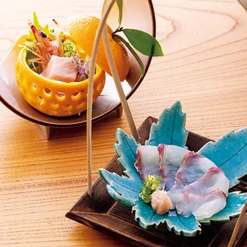 ’22年9月に開いた自身の店で季節の移ろいを意識し、伝統的な食材や技法を大切にした日本料理を提供している。特に、八寸には、手書きの札を添えるなど、食材だけでなく、器や飾りつけで、季節や節句、神事を表現。五感で楽しめるよう趣向が凝らされている。
