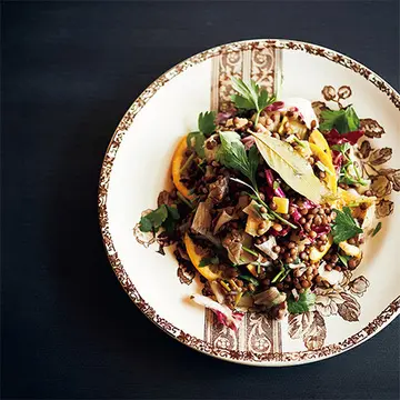 ❻⑤をオーブンから取り出し、温かいところで15〜20分休ませる。たこ糸をはずして好みの厚さに切り分け、ビーツ、しいたけとともに器に盛る。